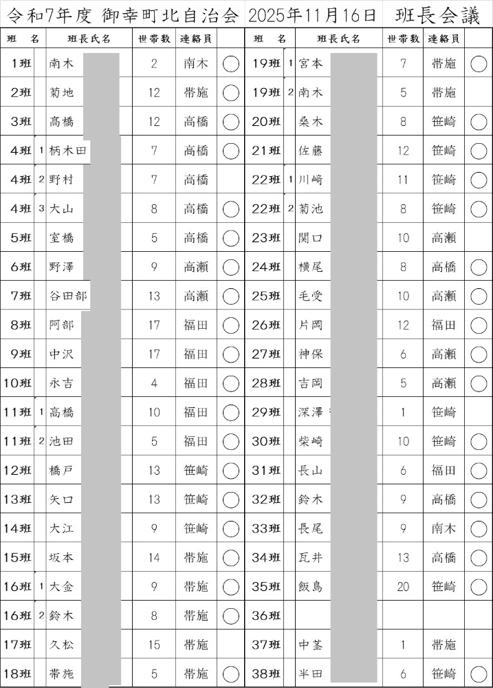 最新情報(2025年11月16日 第5回班長会議 開催しました)