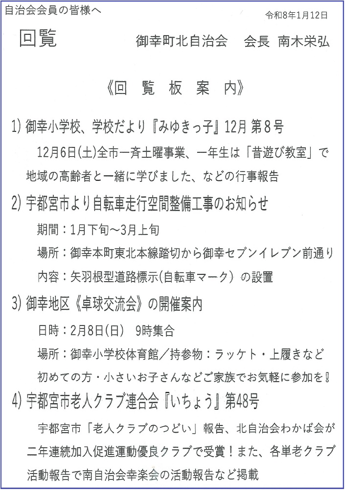 最新版(ダイジェスト)2026年1月12日 回覧板 No17