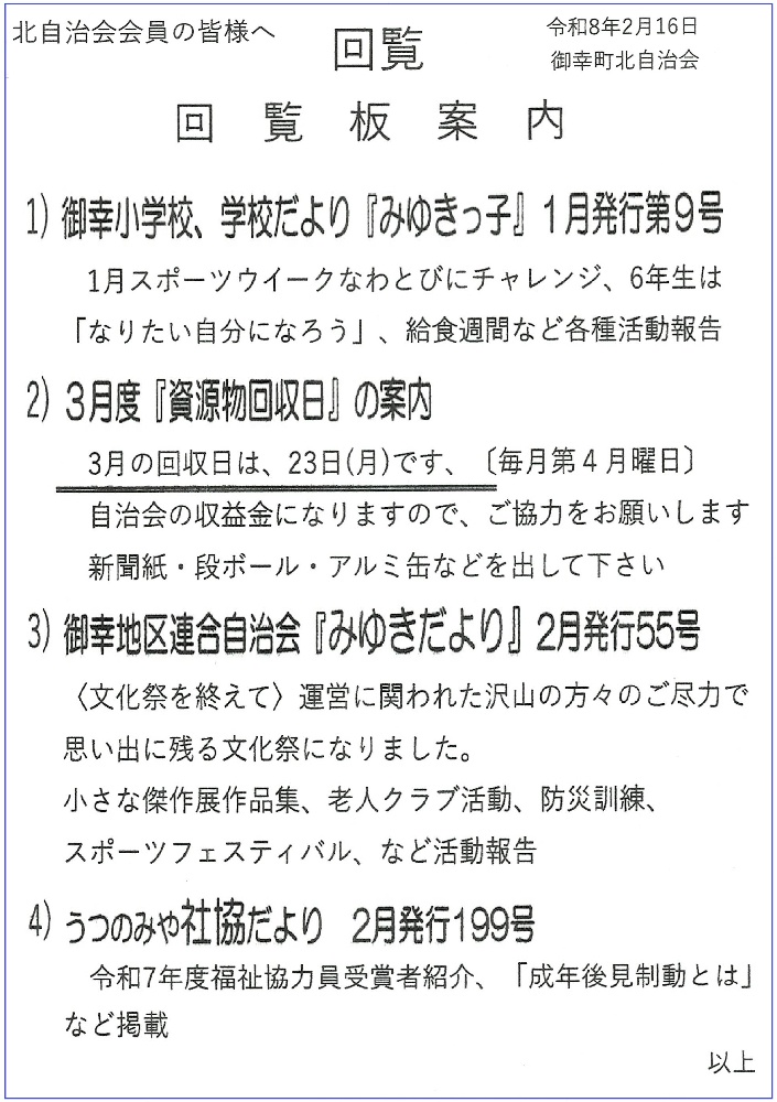最新版(ダイジェスト)2026年2月16日 回覧板 No19
