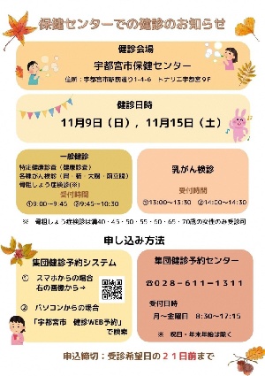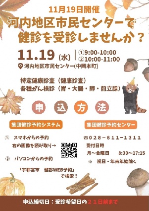 2025年10月8日 \\11/19開催 河内地区市民センターでの健診に空きがあります