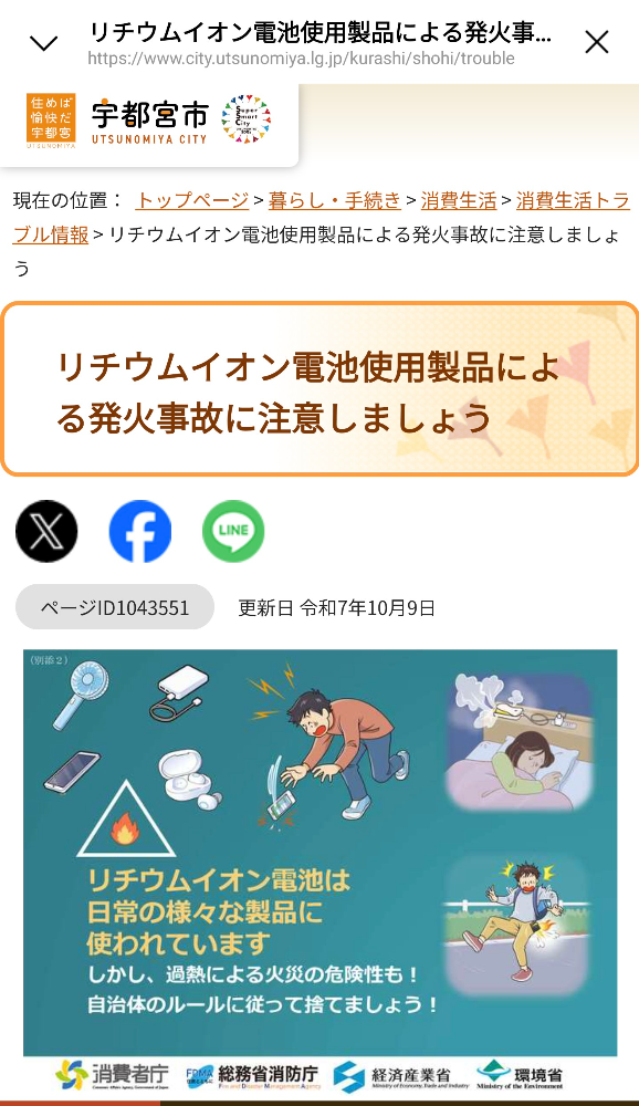 2025年10月9日 リチウムイオン電池使用製品による発火事故に注意しましょう